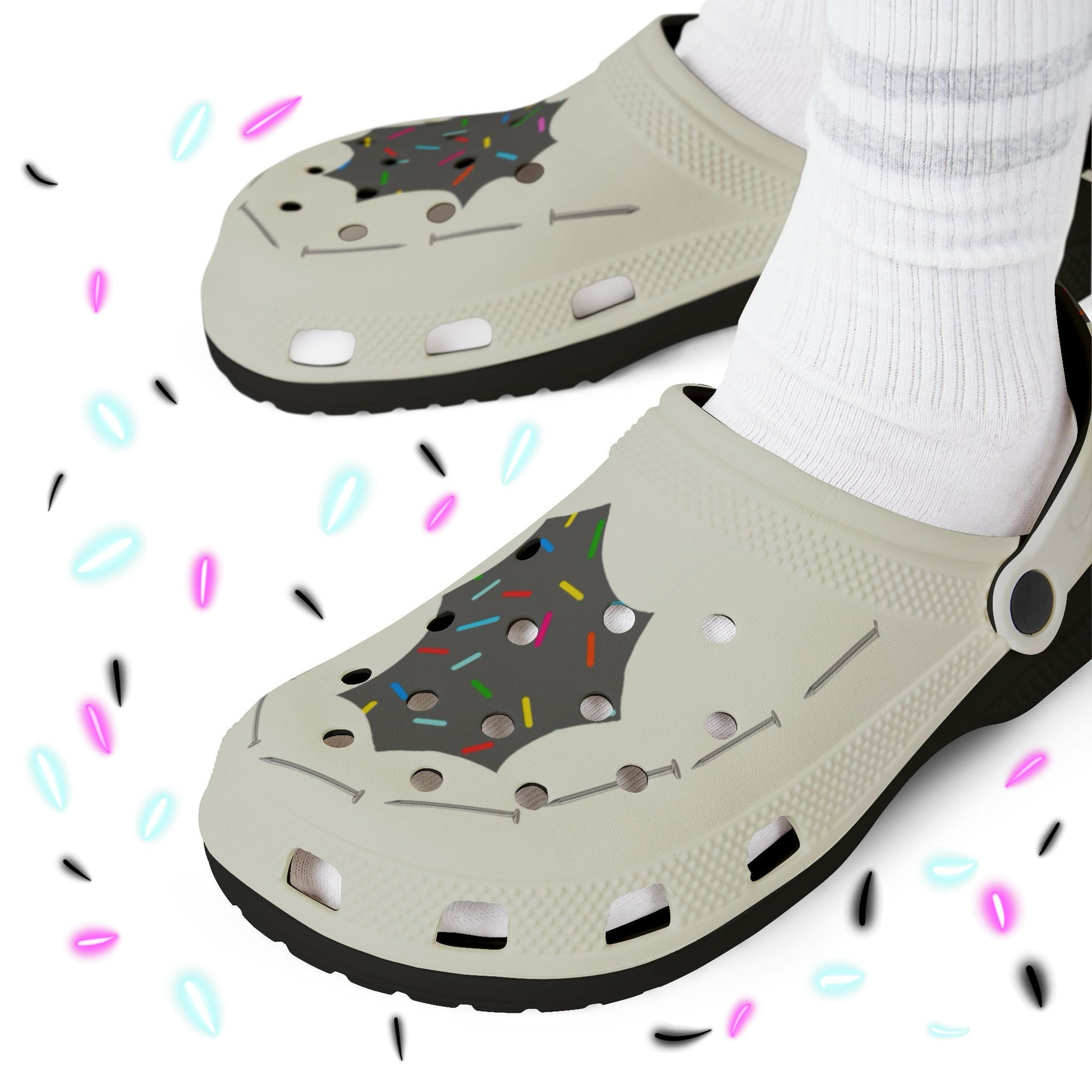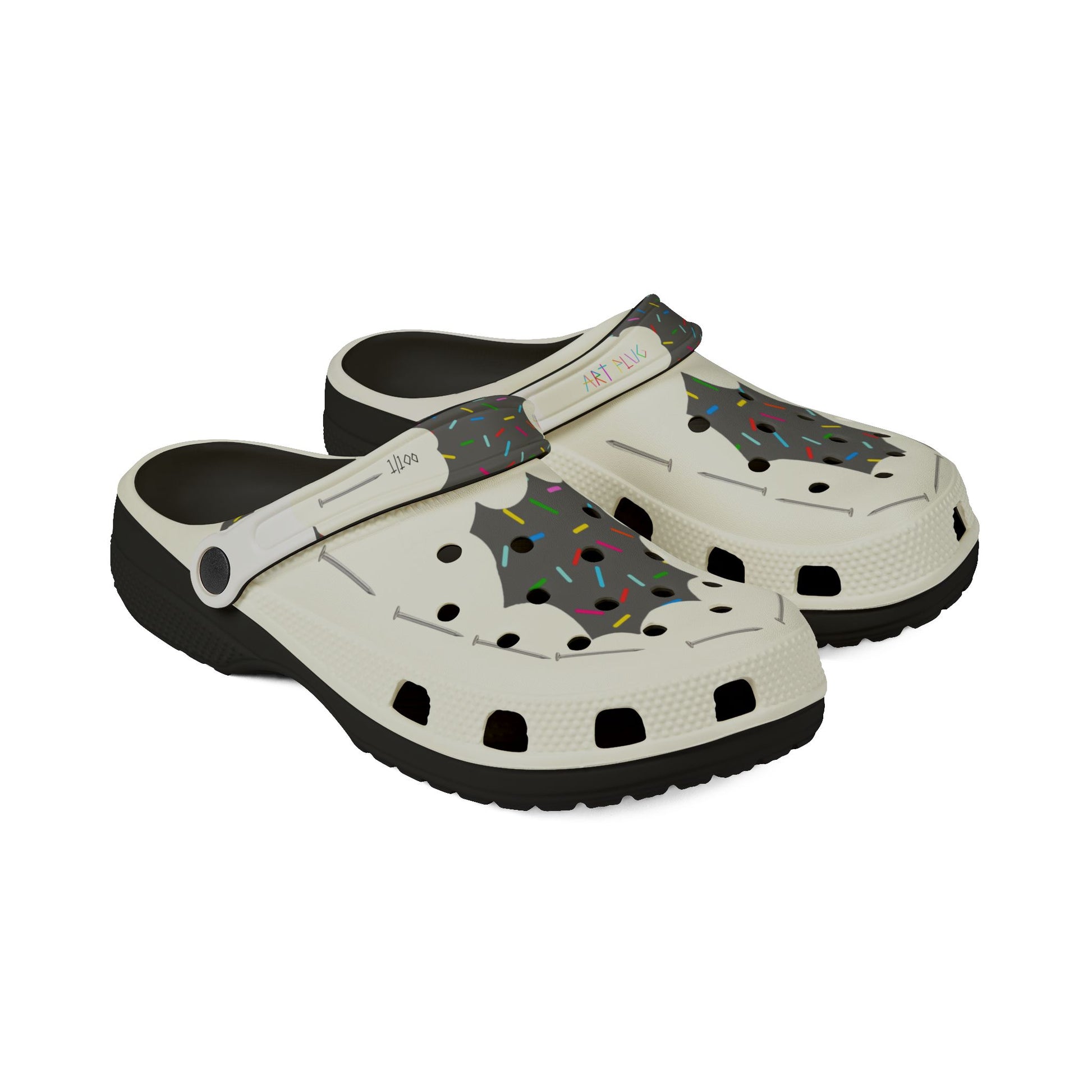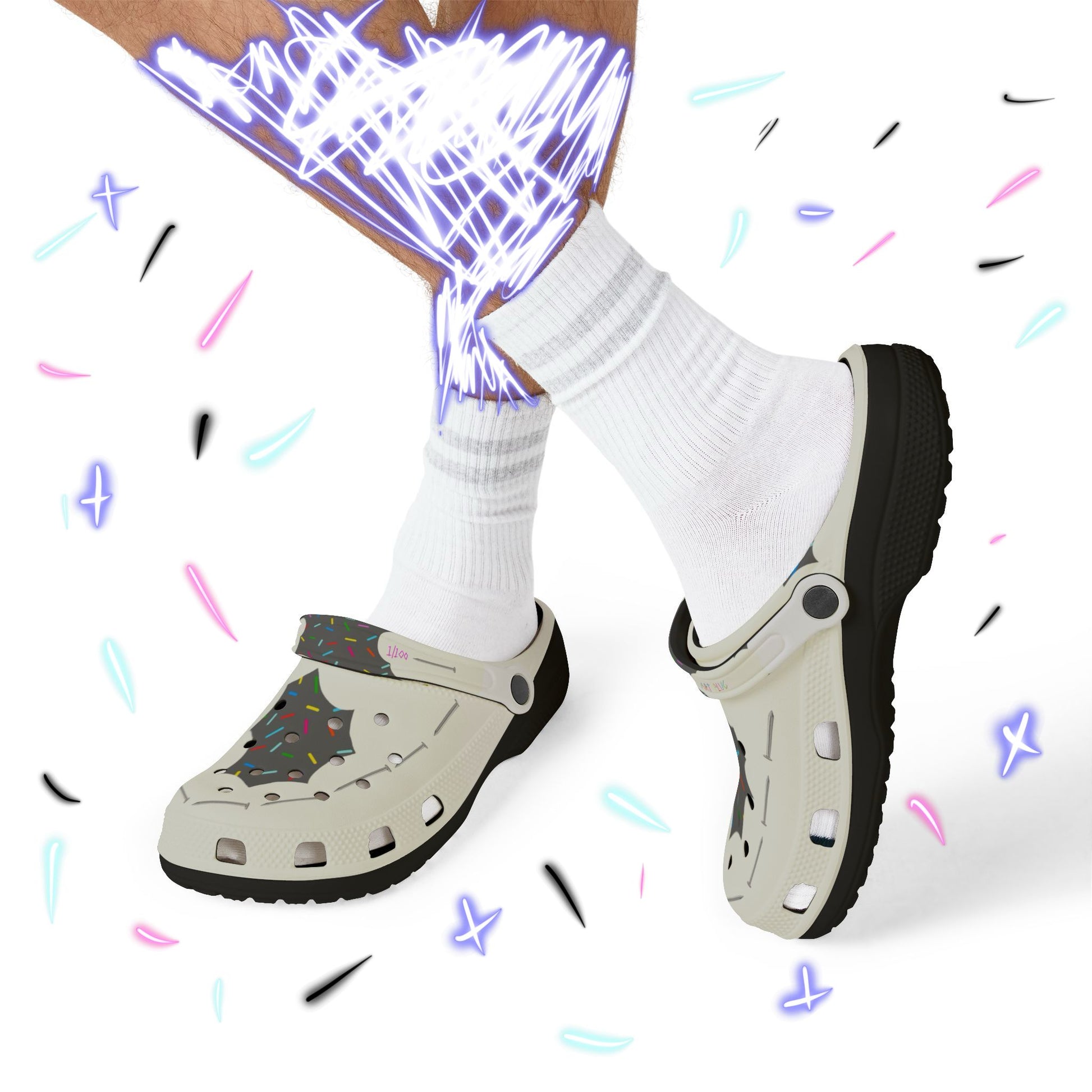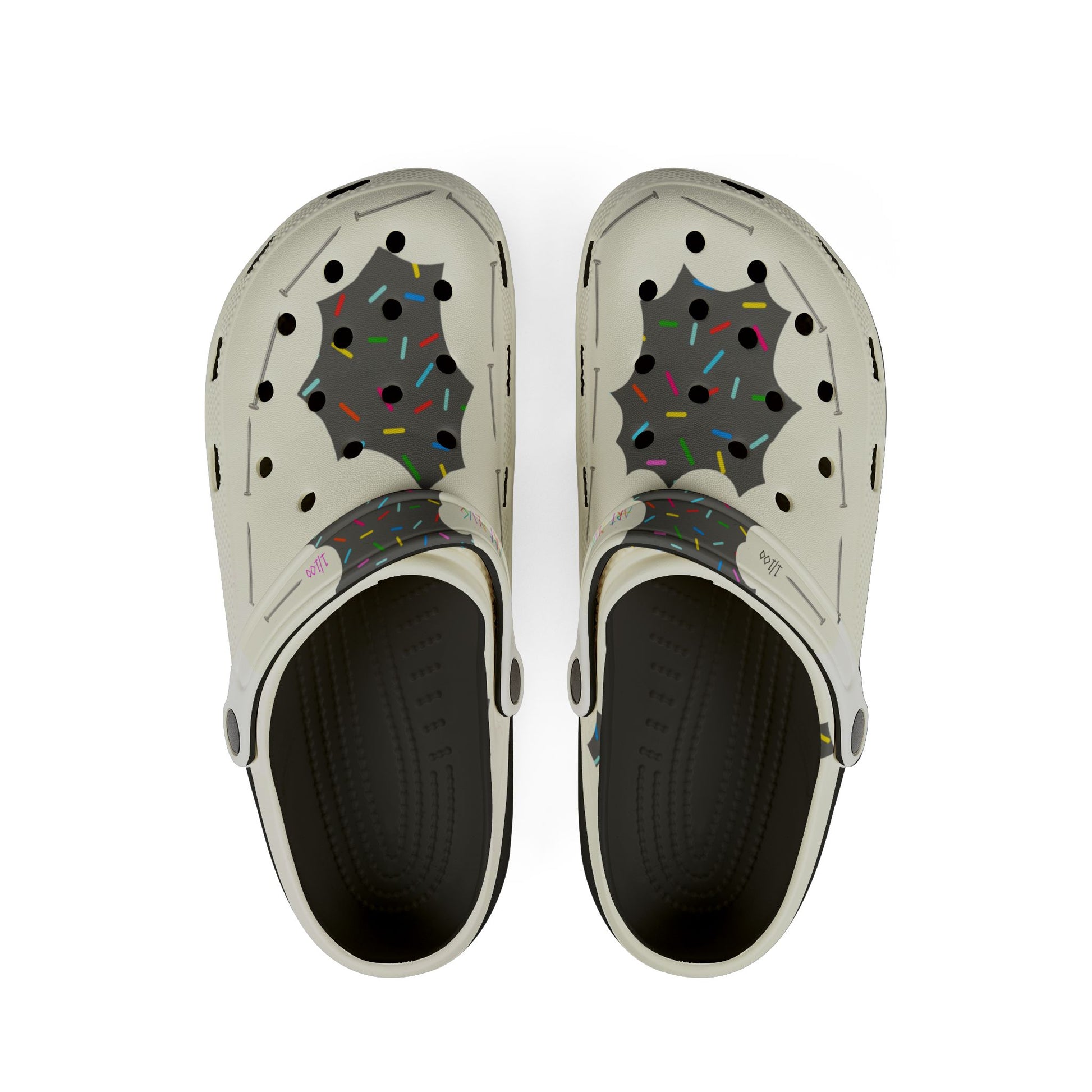 Filed within the Sprinkled family, the "Deadly Desert" EVA Foam Shoes replace sugar tones with grey and shadow. The print suggests dunes under nightfall, a terrain of drifting particles that resemble both sand and ash. The surface reads like a record of a barren yet beautiful landscape.