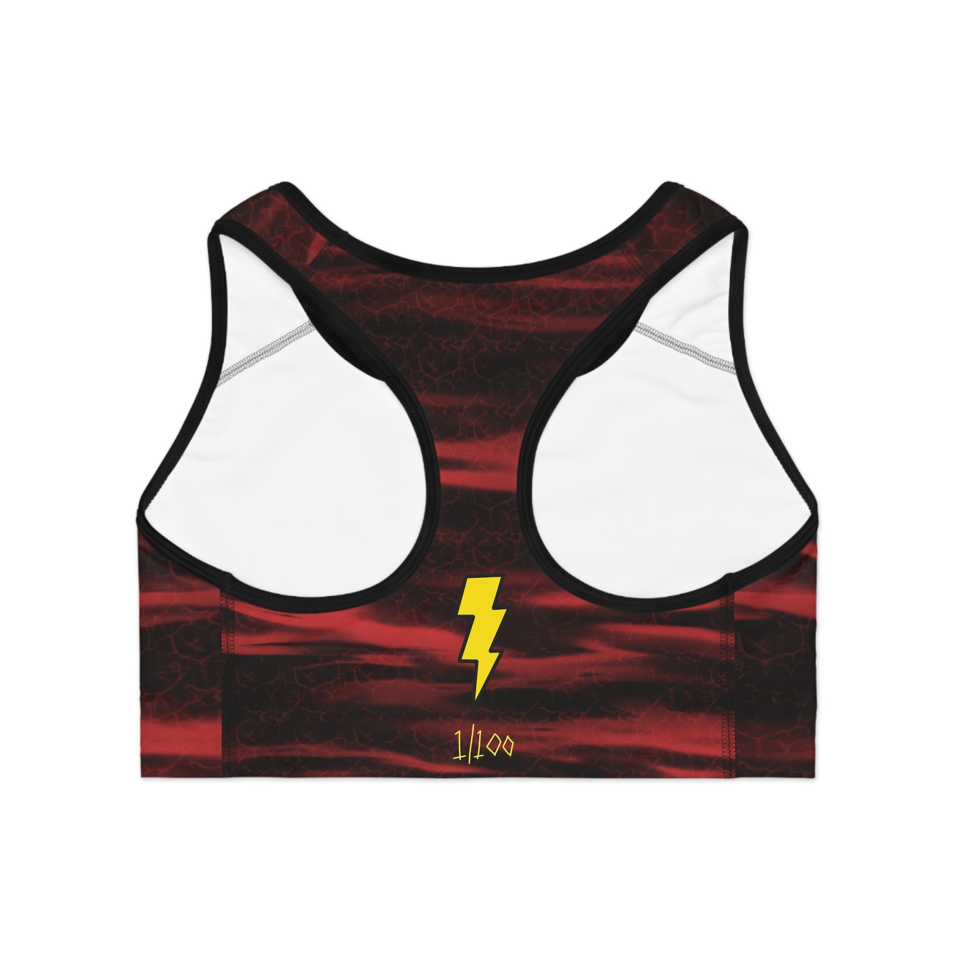 The Fuego sports bra burned with saturated color, its surface alive with streaks that suggested sparks in motion. The all over design carried the intensity of heat translated into pattern, a fragment of flame caught and held in fabric.