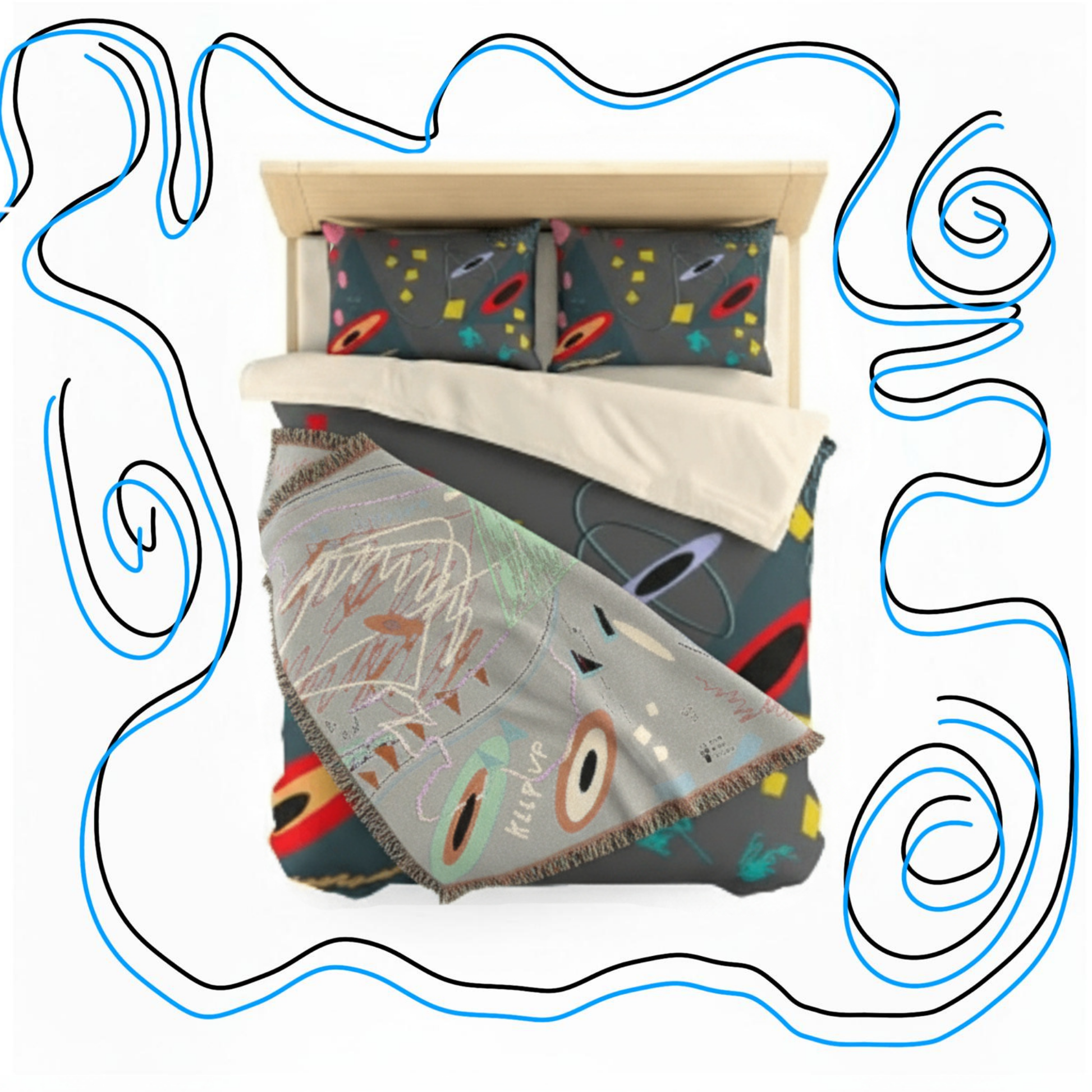 Filed as a tapestry of the archive, the "Hold On" Blanket translates ArtPlug’s original artwork into woven textile. Its surface carries the tension of stillness and motion, a fragment designed to function both as comfort and as wall-hung art.
