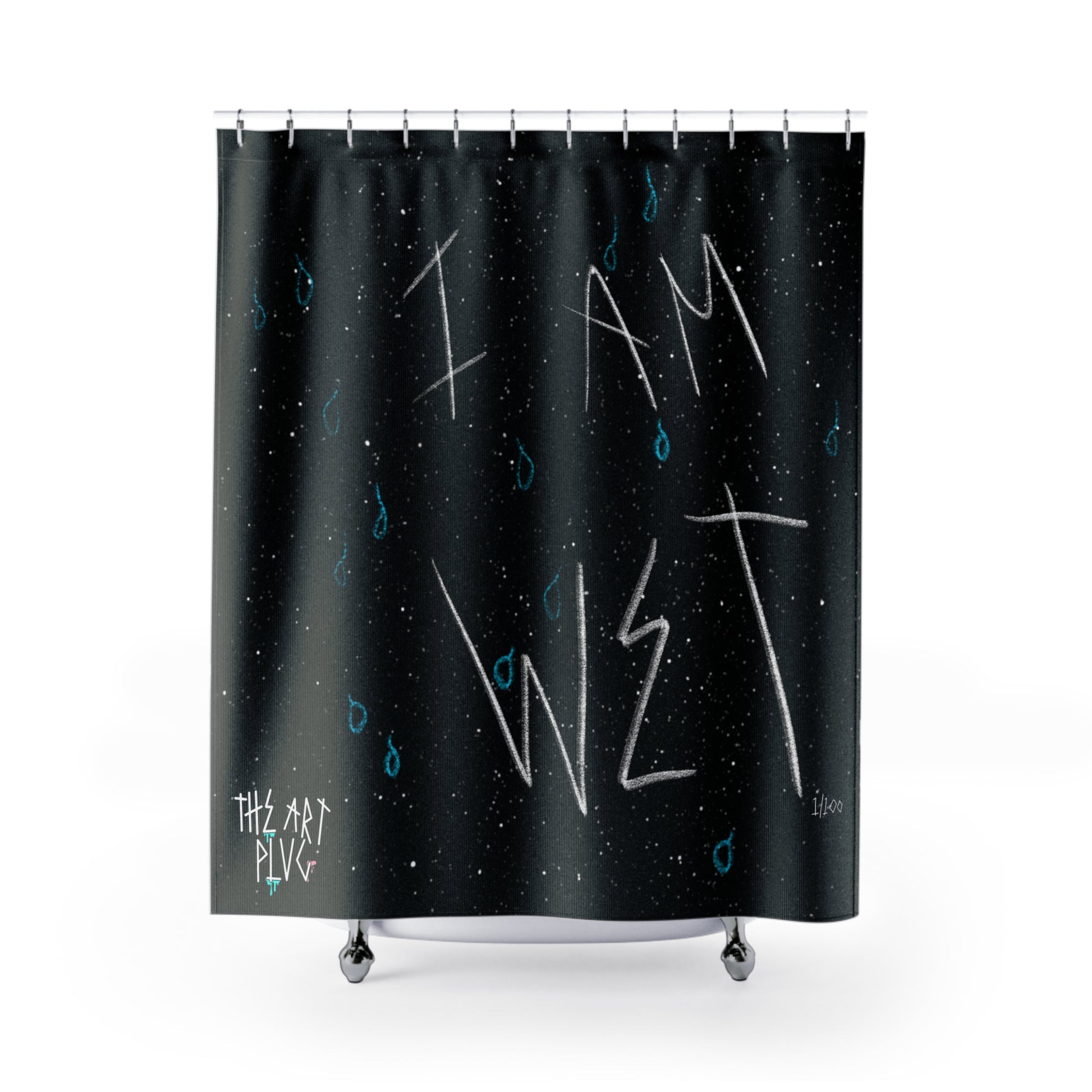 Filed as a domestic artifact, the "I Am Wet" Shower Curtain speaks in direct humor: a textile that shares the same condition as its user. Its surface turns the everyday act of bathing into a playful statement, a gallery piece for the bathroom.