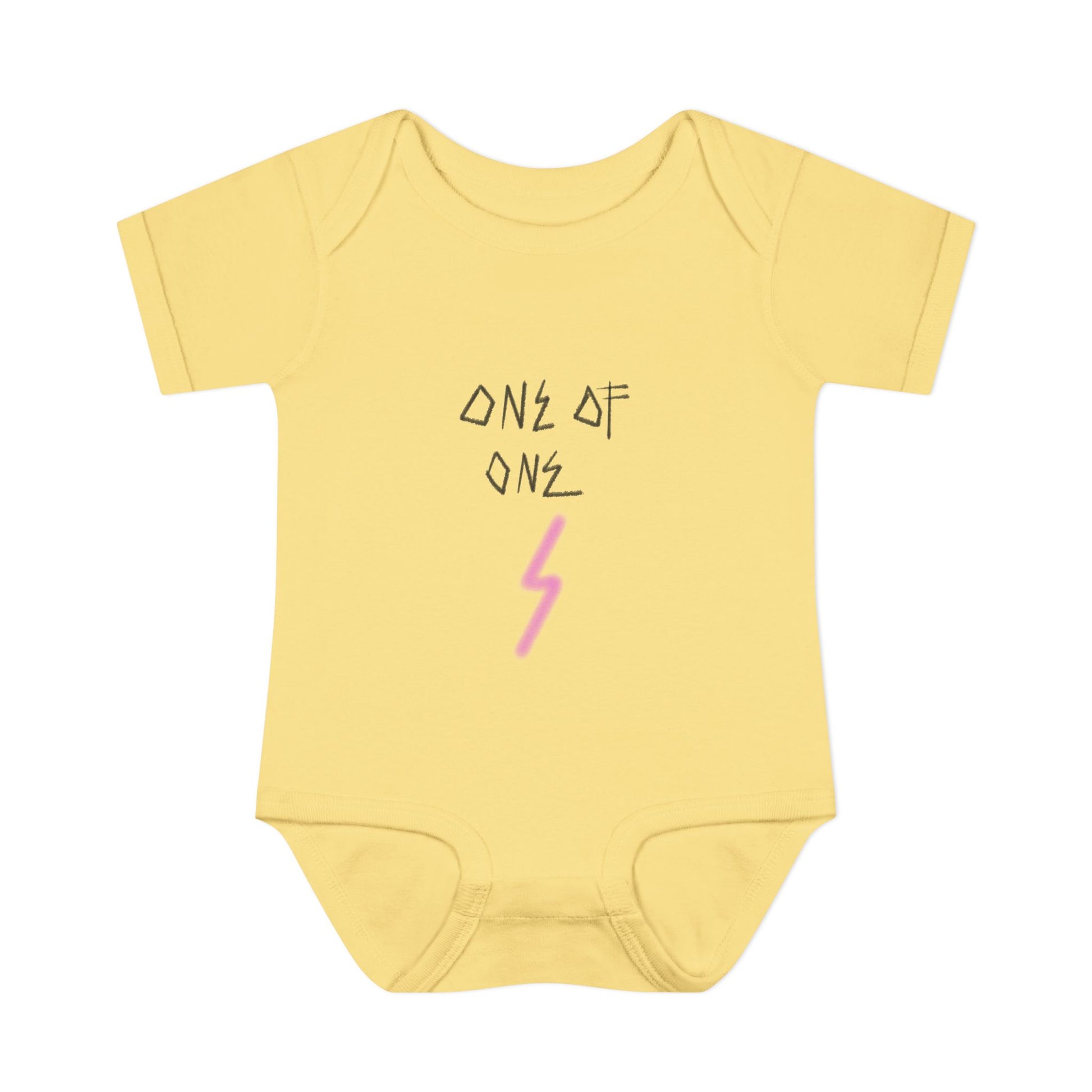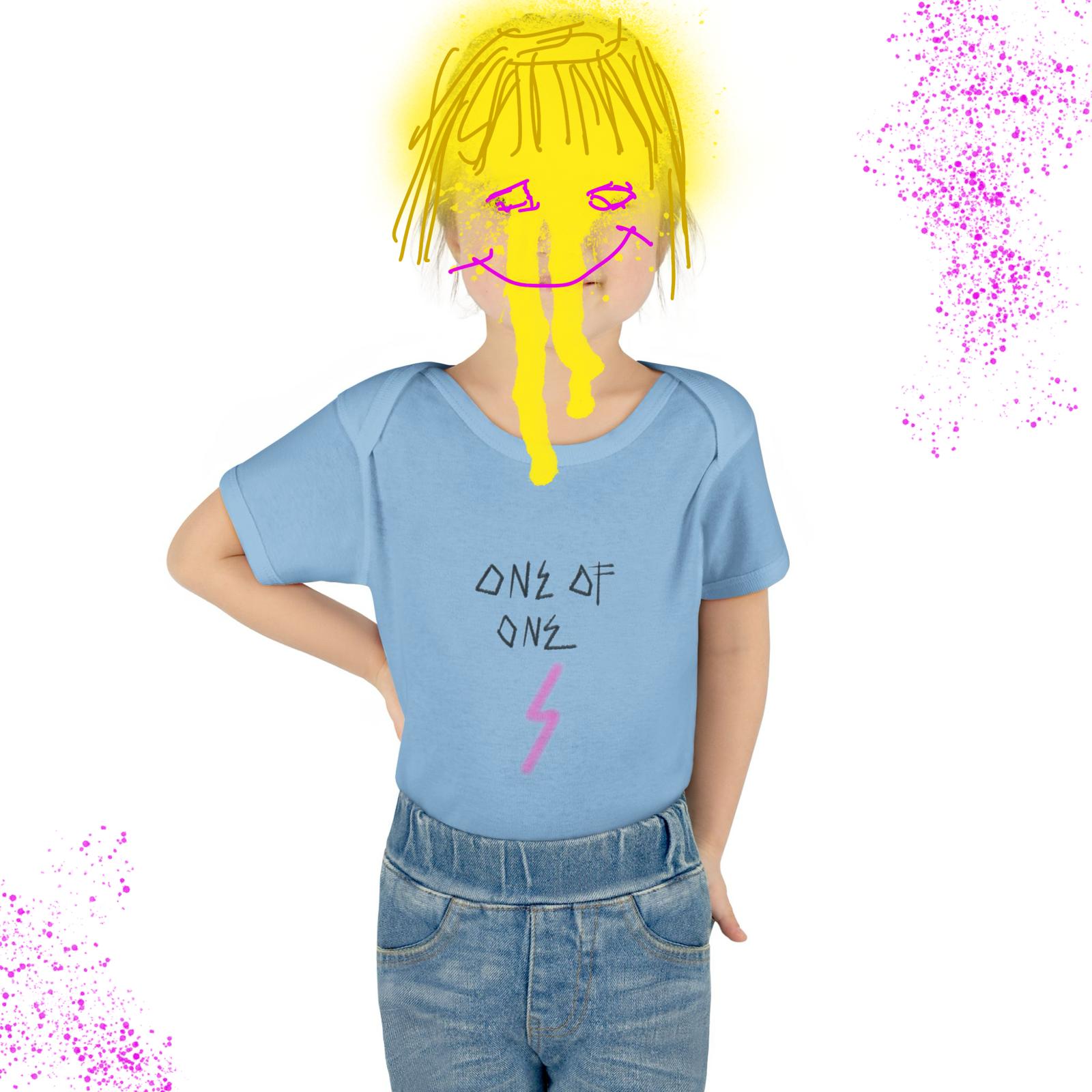 Filed like a record of beginnings, the "One of One" Bodysuit honors the smallest collector with the greatest rarity. Its simple form carries the quiet language of uniqueness, each stitch a reminder that no two are ever the same.