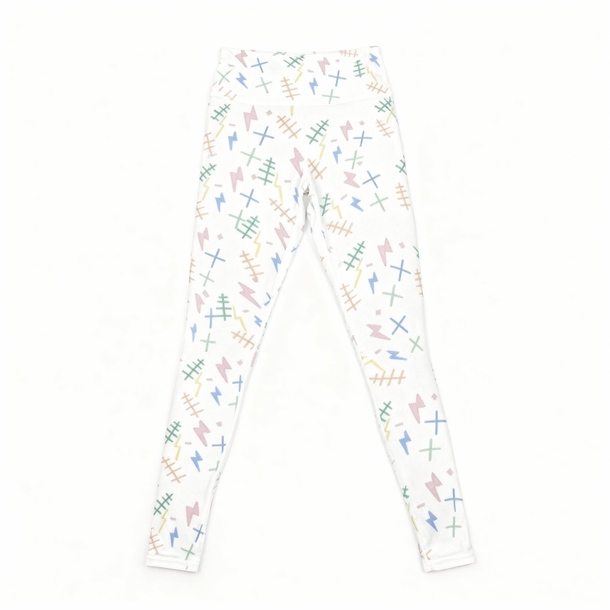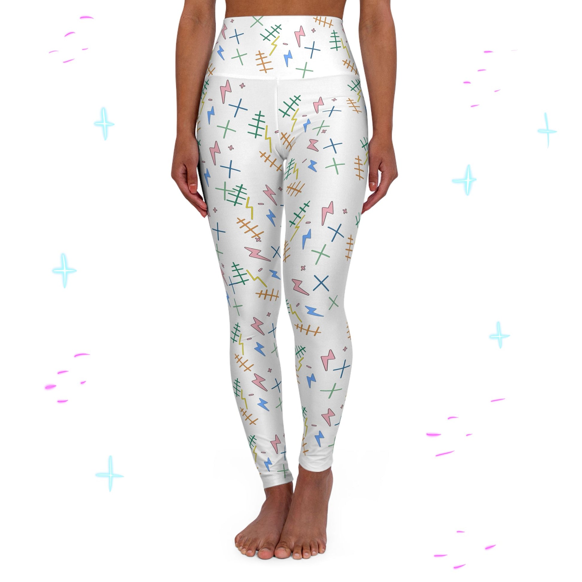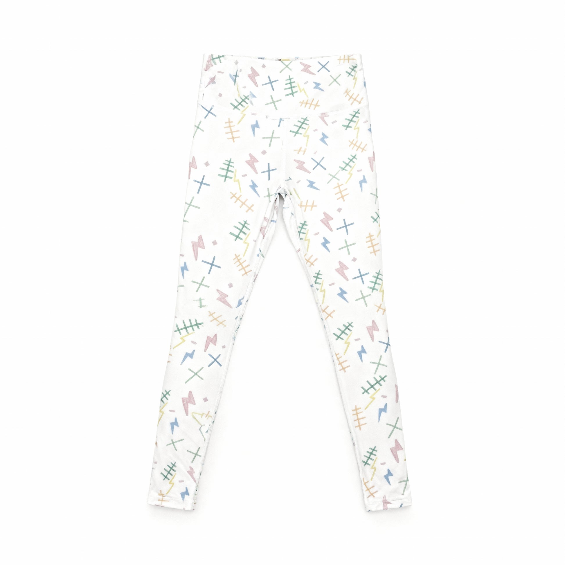 Filed like a patterned manuscript, the "Tap" Yoga Leggings arrange stitches, bolts, and the signs of plus and minus into a repeating rhythm. What could be fragments of notation become an unexpected harmony, a pattern of balance stitched into motion.
